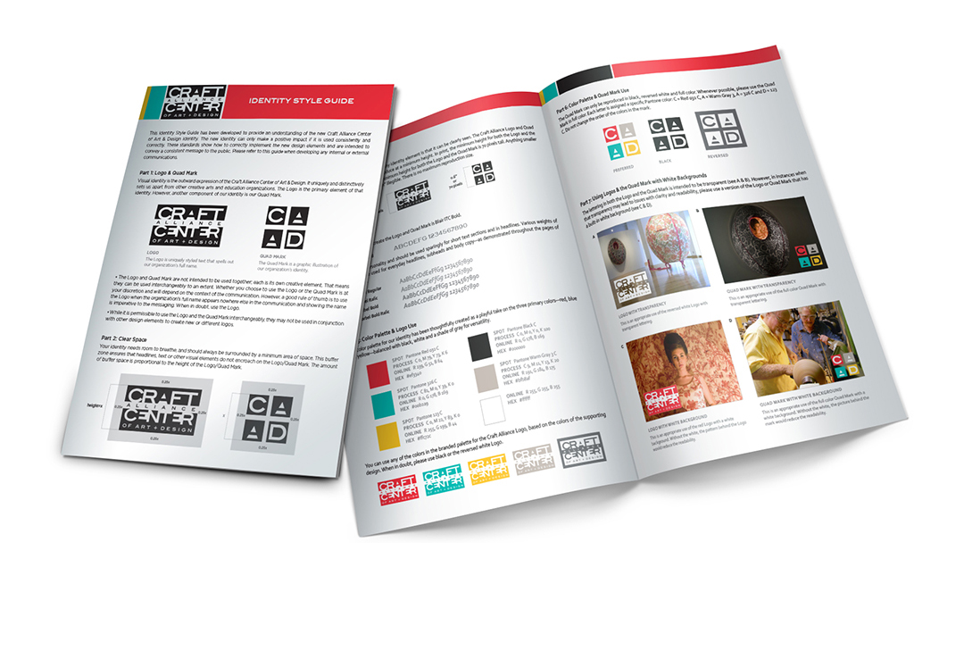 In addition to designing the Craft Alliance identity, I created their brand style and wrote their set of branding guidelines.