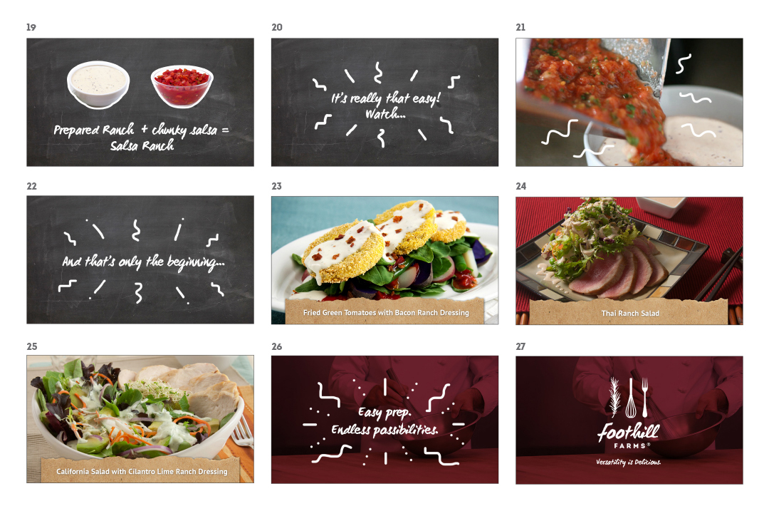 Brochure Advertisements Website Design – Click on the tablet to launch site Social Media Posts Ranch Dressing Video and its Storyboard